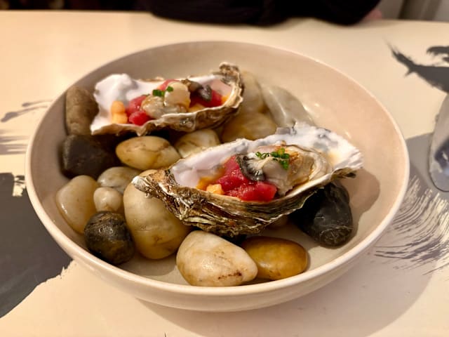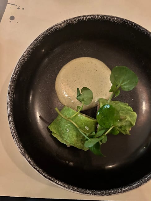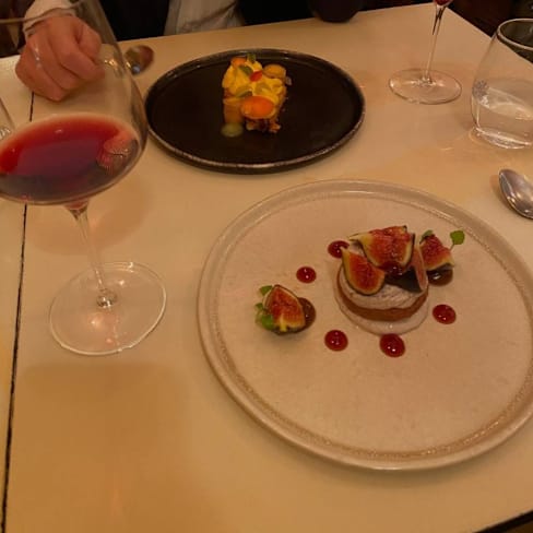 10/10One of the most incredible food experiences of my life—these guys are doing God’s work. The host was absolutely amazing, the best I’ve ever had: knowledgeable, polite, and such a delight. He explained each dish in detail and even went out of his way to call us after we left something behind. The tasting menu was mind-blowing. I recommend the full course if hungry, but the half is also generous. My beef entrée (35-day aged from the French mountains) was the best I’ve ever had—even better than A5 wagyu I tried in Japan. My wife’s fish was equally stunning. The appetizers amazed me: watermelon reimagined in ways I didn’t think possible, chicken with pine nut sauce bursting with flavor (without spices!), salmon with fried seaweed and radish. Dessert mixed Korean and South American touches beautifully. Every dish was packed with creativity and depth. Eating here was the highlight of our trip. 10/10—will definitely return to Paris just to come back.