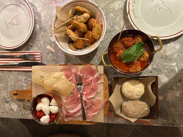 4/10Very limited menu for both food and wine to order at the table. No adaptability on those few menu options (as everything appears to be pre made and not made to order). Portions are on the smaller side and prices on the higher side. Add coperto charge of 3€ pp for not much. Feels trendy without much local flair. Not quite what we were looking for.