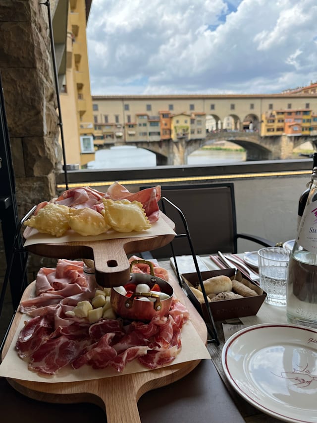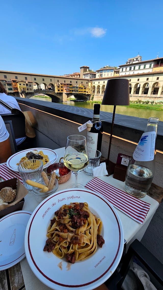 7/10Stunning view of Ponte Vecchio from the terrace. Food was good but we ordered pasta ragu which had very little sauce and was quite dry. Dessert tasting plate was delicious and of good size.