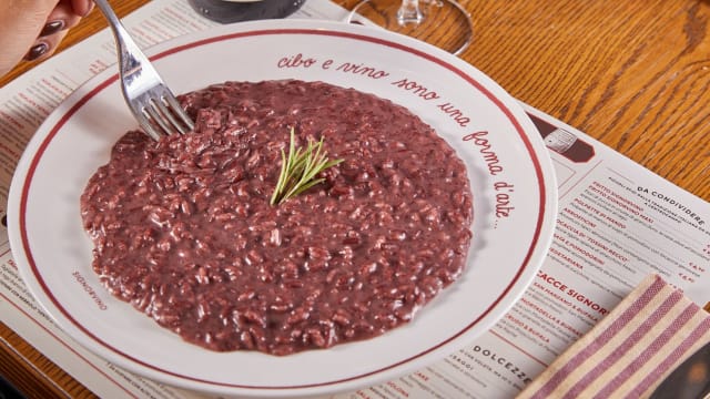 Riso carnaroli al vino, amarone della valpolicella e salsa con parmigiano reggiano