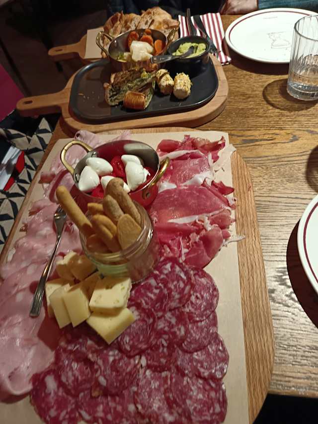 7.5/10Food was a bit of a "mixed bag" this time. Taglieri and focaccia really good (as always), but two different pasta (bolognese, funghi porcini) did not really convince. The pasta itself were good, but respective sauces a bit too "frugal", even "dry" (bolognese). Has the kitchen team changed?? Ambiance, this time, did also not convince. Although we had - on purpose - requested seating inside (which we were offered), but close to widely opened doors, we increasingly felt too cold.