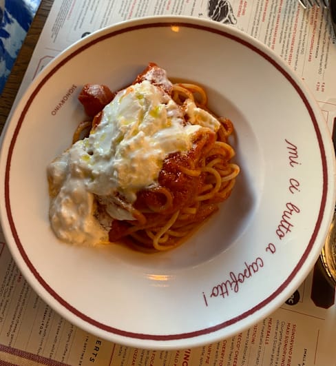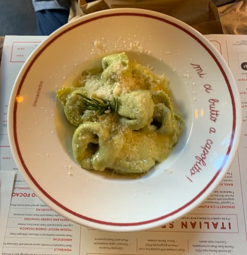 10/10A busy local spot that left us full and happy. All 3 of our meals were delicious. We had the rustic cutlet, basil and pinenut tortellini and the spaghetti c’a pummarola. Glad we made a reservation, it got crowded fast.