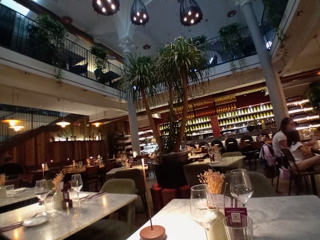 7.5/10Beautiful space for all the wine lovers with great food. Unfortunately, we were charged 9€ for a 2 bread and 4 gressini couvert, and 8€ for 5€ glass of wine in the menu. .