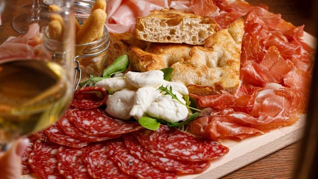 Prosciutto di parma DOP 24 mesi “piazza peppino” • mortadella favola gran riserva “palmieri” • salame campagnolo “peveri” • coppa piacentina DOP “grossetti” • prosciutto cotto alle erbe “leoncini” • stracciatella pugliese • focaccia pinsa • mini grissini “zorzi” (consigliato per 4 persone)