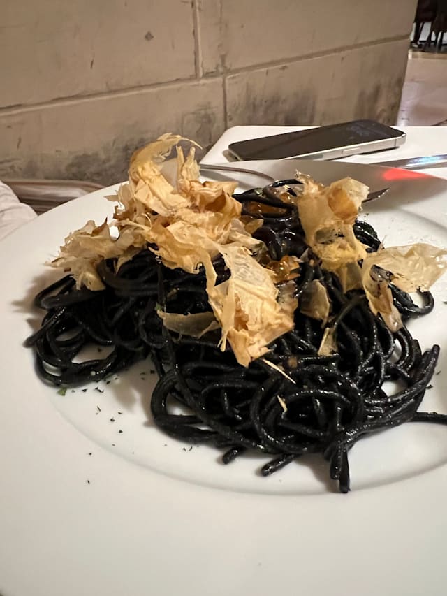 10/10We had dinner here last night, a relatively last minute booking after arriving into Verona in the afternoon. The restaurant is located upstairs above the wine shop and is a lovely space. As we were eating early, we managed to get one of the few tables that are located outside. We enjoyed a pre dinner aperol spritz (served with a nice selection of Parmesan biscuits, olives and tiny salami style cocktail sausages). The meal menu includes a good mix of options for entrees, pasta and secondi dishes. All our selections were very good and we picked a bottle of wine from the wine shop to accompany the meal (which was also great). Waiting staff were attentive and the service was excellent. As we’re in Verona for a week, we will definitely be back!