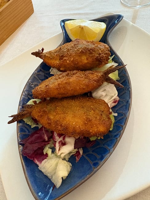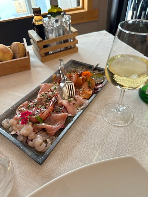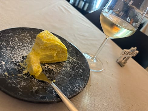 8/10Crispy breaded sardines. Pistachio pesto pasta with seafood. Lemon cheesecake. White wines by glass included Chardonnay, Grillo and Inizola single grape varietals.
