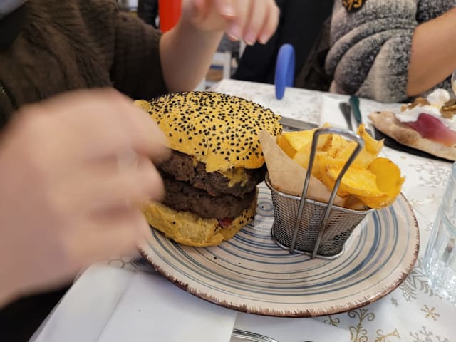 8/10Food is good, we had mix Tagliere (cheese and meat cut) and sheep hamburger. Nice the choice of breads for your hamburger, disappointing the small portion of chips that seemed out of a package, the burger was nice but a bit dry, good idea the Mach with ricotta cheese but maybe the mix for the burger needs to be adjusted a bit. Overall a nice place for a bite, quite nice service and atmosphere.