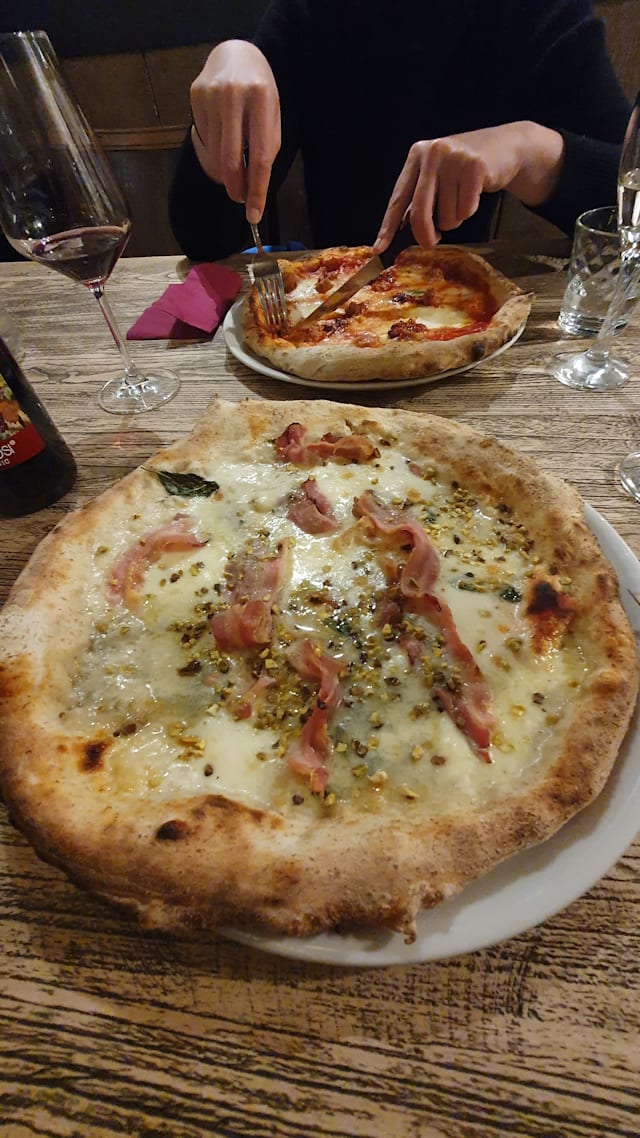 8.5/10We didn’t realize the restaurant and pizzeria were separate operations, one next to the other. Were nicely welcomed into restaurant and ordered a drink, then realized pizza was next door. Our server kindly arranged for us to go next door, where service was also friendly and efficient and pizza was good. Mixed salad before was fresh and large! Pizzeria filled up fast after our 7pm reservation on a Monday night.