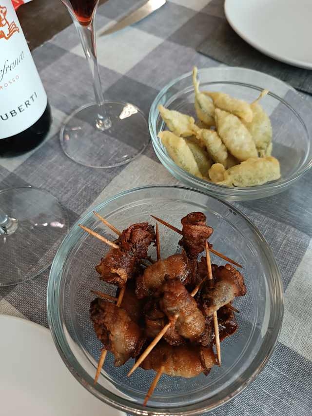 - (tagliere di salumi e formaggi, salvia fritta, lumache bardate)