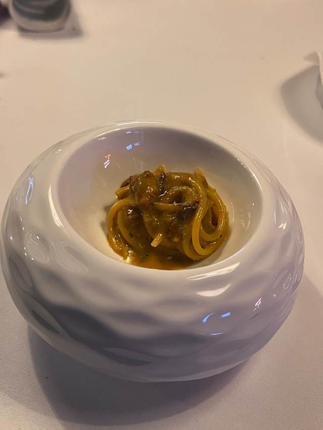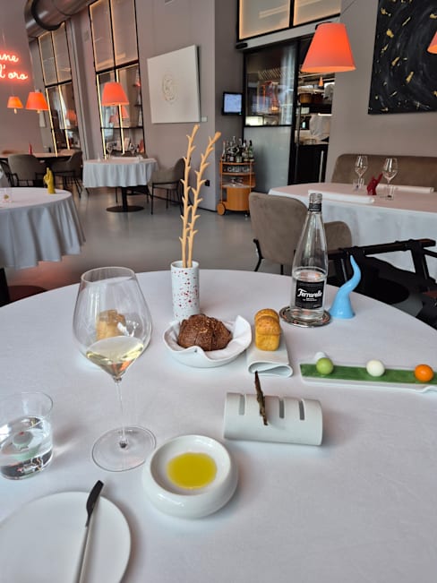 9.5/10Creative preparations, good value overall - plenty of "amuse bouche" (starters), great breads + oil and flavored butters, and also nice "petite patisserie" at the end; all this for a very reasonable "coperto" (5€) cost. Nice rhythm: not too fast, not too slow. Servings were quite large - so be prepared to eat quite a lot.