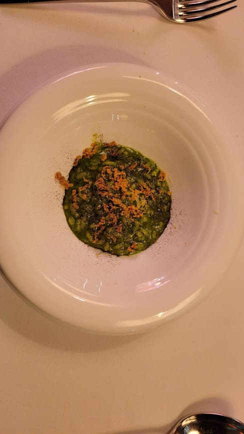 10/10The food and service was amazing. The chef Roberto di Pinto came out with the entreé which was so special. Our waiter was fantastic and explained everything in English which must have been challenging and would find out an ingredient if he didn’t know the English word. The atmosphere was so comfortable and relaxed and yet refined. Highly recommend!!