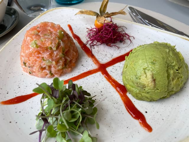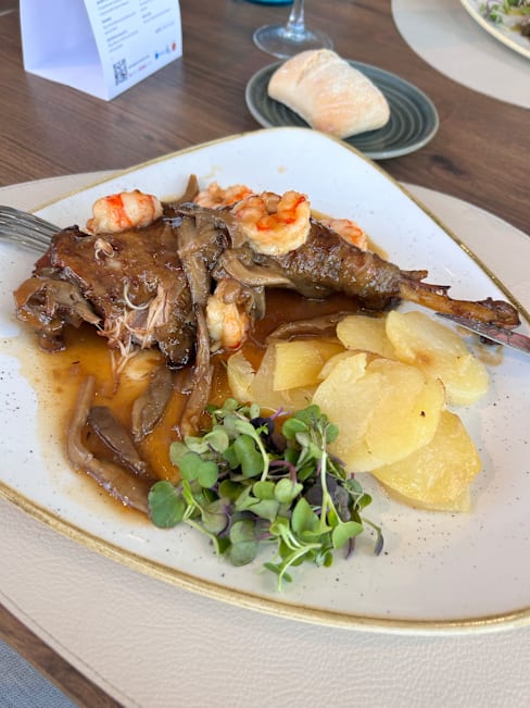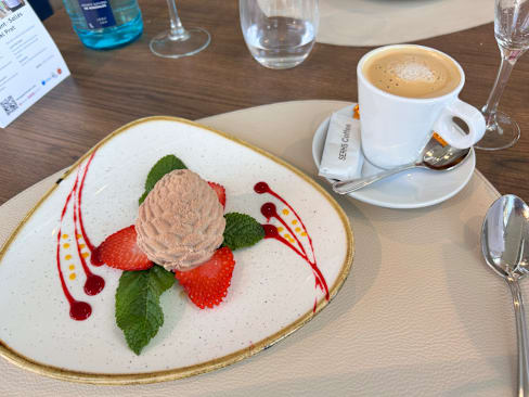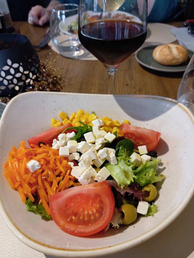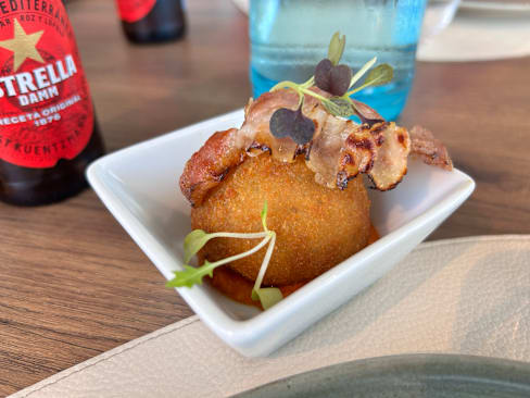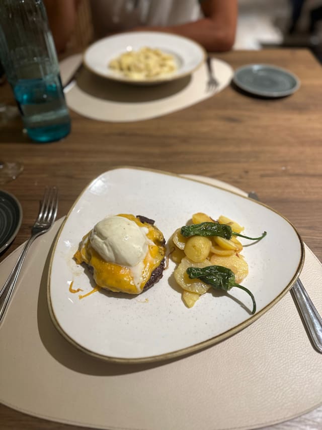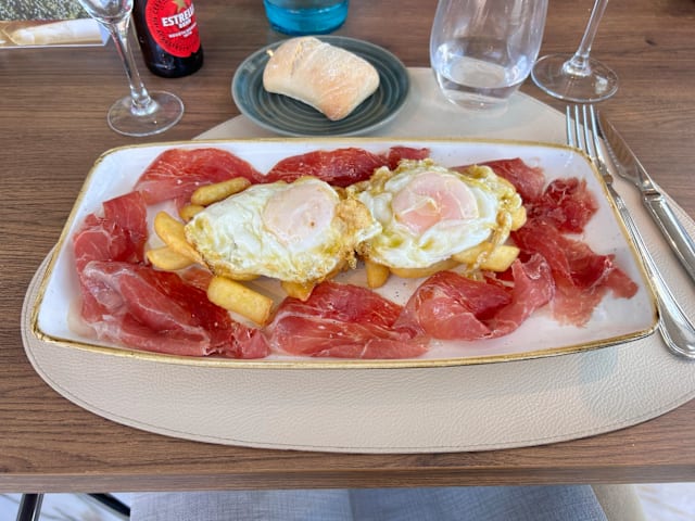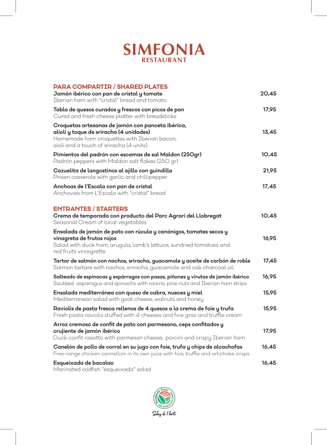 9.5/10We absolutely loved the food - we each had Mediterranean salads and beef entrees. My husband had a dessert, too. Everything was nicely presented and at the right temperature. Only negatives were that they did not have any Albarino wine (we drink white even when having beef), and that they never turned the lights down or lit candles (which were on every table) to create a better ambiance in the restaurant. Both wait staff were very friendly and attentive. We will return to the restaurant next time we're in Barcelona if we need to stay near the airport upon arrival or departure.