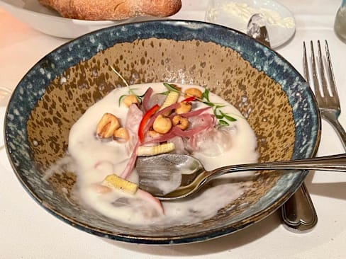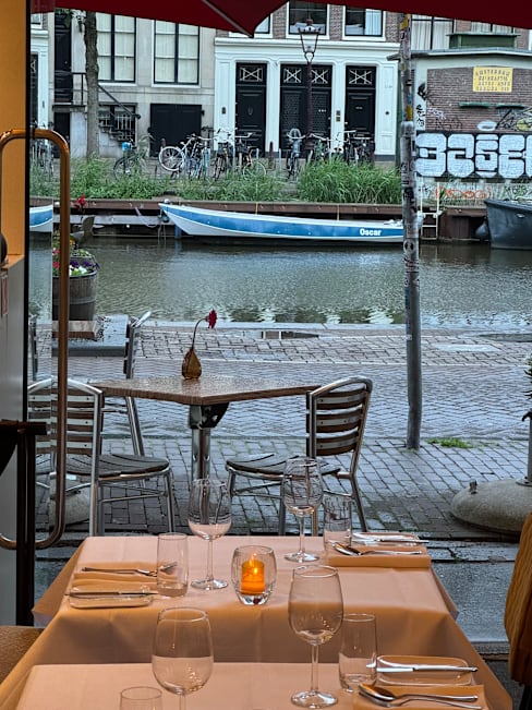 10/10Fantastic 5 course meny with good wine recommendations. You can look from the glass entrance doors direct to the canal. Fantastic service and owner Julia is a fantastic person with a very interesting story of mooving from Santiago de Chile to Amsterdam. Tank you very much Christine&Jan-Martin from Finland