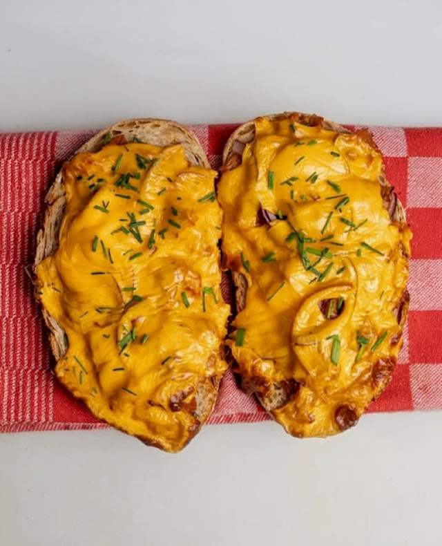 - Pulled chicken, BBQ sauce, red onion & cheddar cheese. Choose your bread; sourdough - bagel - glutenfree bun