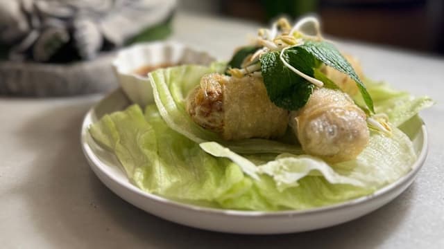 Rollitos de primavera con carne picada de cerdo y tofu.