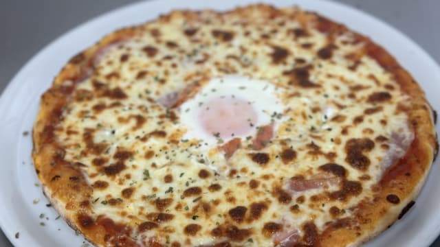 Tomate, mozzarella, pimientos, champinones, alcachofas, cebolla, olivas, maiz dulce