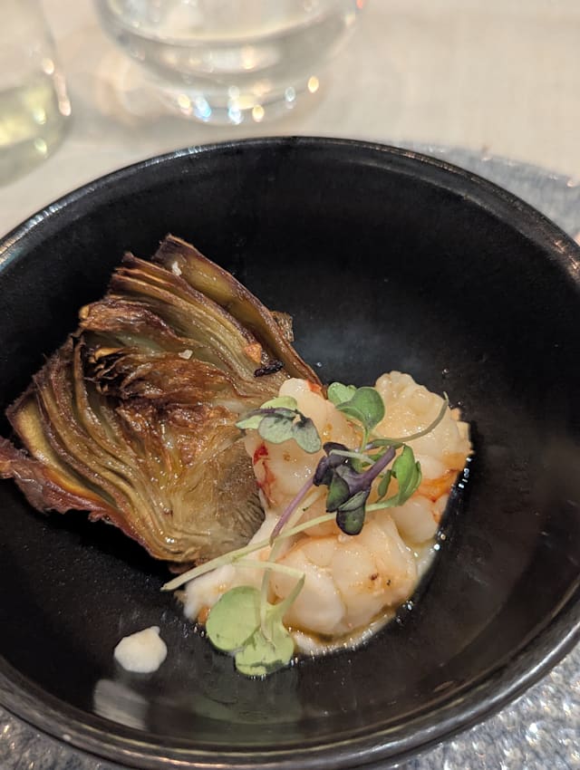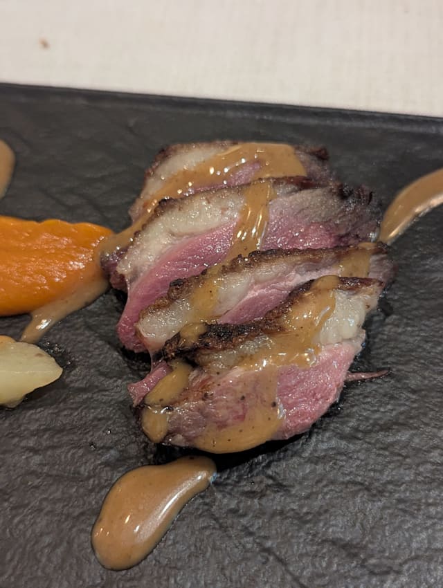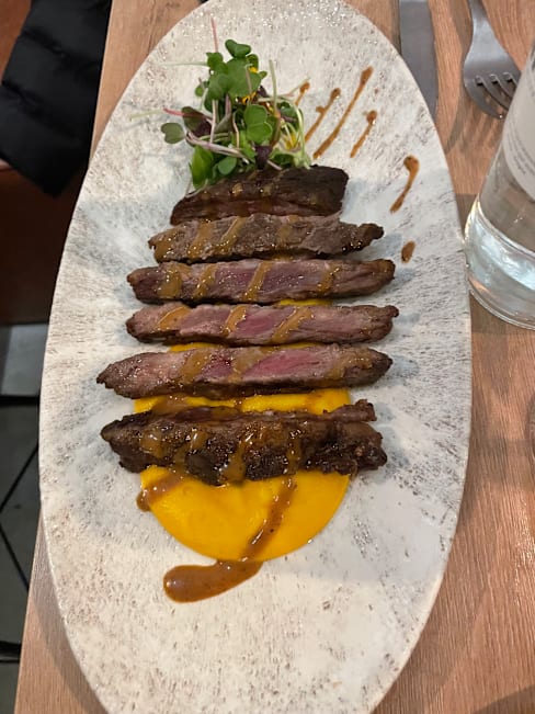 9.5/10Lovely small restaurant with very comfortable chairs. The tasting menu was an outstanding balance of innovative shellfish dishes and wonderful meat, mainly beef. Beautifully cooked and presented. A real treat for our lunch.