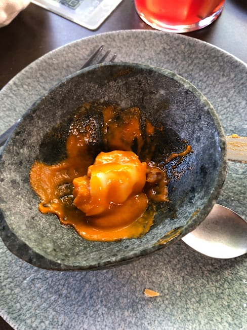 9.5/10The pro’s got it right - this place delivers. Tiny portions that build to a rewarding and fantastic meal. If you want to try it, I’d suggest the tasting menu… you get a little if everything. Personal favourite were the squid gyoza’s in some Mexican inspired sauce that was to die for… I would say that everything eaten was an 8+ or higher, with exception of the marrow, which lacked density of flavour (7) - but when mixed with the tartar, made it an 8. Still worth a try! Go! You won’t be disappointed, one of the best secrets in Madrid.