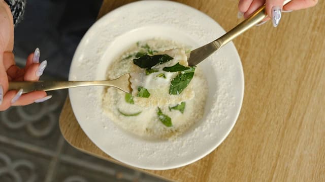 Risotto cremoso con setas silvestres, un toque de vino blanco y parmesano — una suavidad que se derrite en la boca
