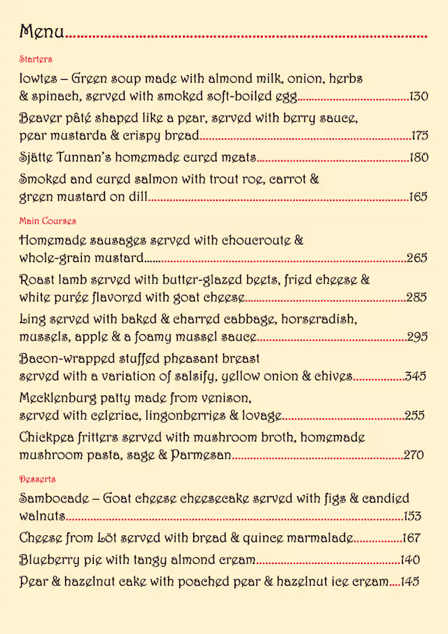10/10We really enjoyed our traditional meal. The staff were great in explaining the menu and other parts of the meal. One of our favorite dining experiences in Stockholm. Highly recommend.