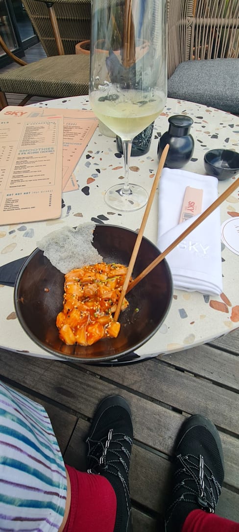 7/10We were looking forward to our meal here for our one night in Lisbon. The atmosphere was great inside but we were seated in a corner outside away from everyone — things quickly went downhill as we waited 45 minutes before managing to get someone’s attention for drinks and another 30 minutes before we got them . We were told fried food, including tempura etc wasn’t available, so we ordered sushi which took another 40 minutes to arrive, 3 tables that arrived after us were served first— one even got fried dishes we were told weren’t available. When we asked, the waitress passed us to the manager, who was very apologetic and admitted our table had been completely forgotten and no one had come back to inform us the Kitchen was back to normal service. The manager did knock our 2 drinks off the menu but still tried to charge us the full price rather than the discounted fork price, this was corrected when highlighted, it´s a shame as the food / view was top but the service really let it down.