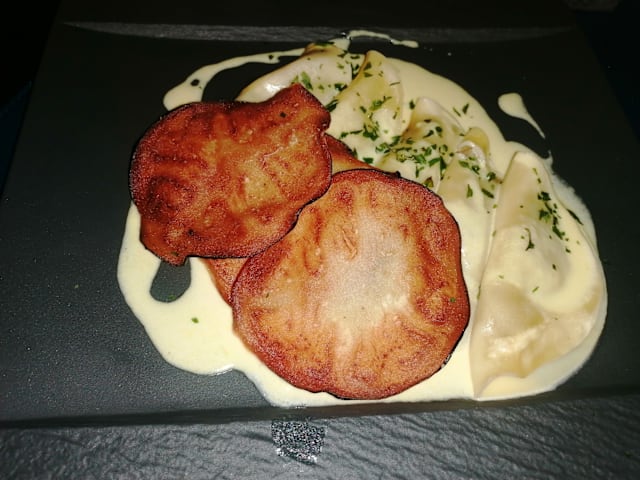 - Seared octopus with soy and salted caramel on a potato cream