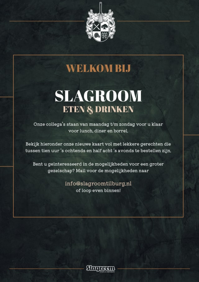 Slagroom Eten en Drinken is als binnenstappen in een ouderwets Hollandse boerderijkeuken: een warme ambiance en overduidelijke Brabantse gastvrijheid! In dit authentieke café hechten we veel waarde aan beleving, sfeer en gezelligheid; dat is terug te zien in de menukaart en de verschille...