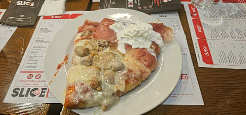 9/10While new to Milan my partner and i knew we wanted pizza for our dinner on the first night so i went on tripadvisor and saw slice was rated highly for their amazing pizza. Slice definitely upheld their standard from reviews left in 2022… Now in 2023 their service is still prompt, Warm and friendly. The pizza is outtt of this world, thick, soft, served hot with the freshest of toppings I will certainly be returning before i leave this weekend.