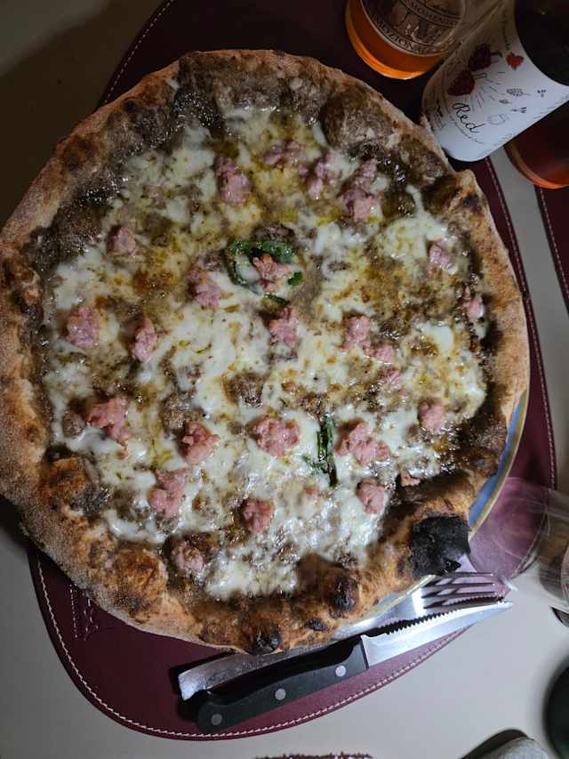 - Base stracchino, 'nduja, cipollotto, in uscita mozzarella di bufala, salsa tonnata