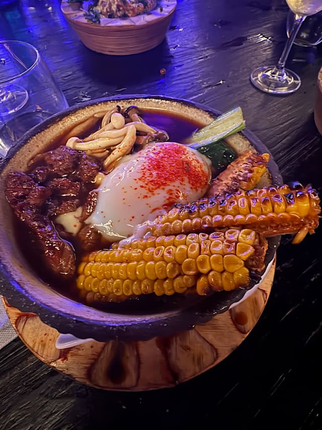 3.5/10We went on 1st Jan hoping for Japanese bbq. We were served grilled meat on a grill but already cooked. Such a disappointment! My king salmon was nice but sooo small and had no side dishes. My son‘s duck with rice caused him food poisoning. He woke up at 3am with terrible stomach pain, nausea, fever and sweating. He had to lie in bed for 36 hours with ginger tea, nothing else. We were served at different times and ate separately more or less. The exorbitant glass of wine was the only one served by glass. Sometime during the meal the lights turned off and two dancers moved wildly and dangerously between the tables for a few minutes and then everything returned to normal. We left soon after never to return again…