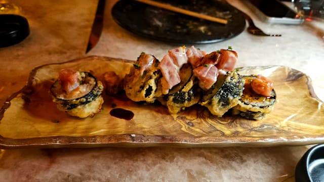 6/10Food was good and tasty but the restaurant had significant issues with their inventory. Running out of multiple menu items, especially popular ones like the wagyu sushi roll, carabinero sushi roll, they also ran out of the only sake bottle they had on the menu. And when we ordered a cocktail with Gin they said they ran out of Gin. Is quite disappointing, particularly on a busy night like Saturday. It's important for restaurants to anticipate higher demand on weekends and ensure they are well-stocked to provide a full dining experience. You might want to mention this feedback to the restaurant management, as it can help them improve their service and inventory management for future customers.