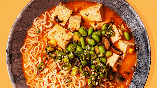 - Frango grelhado com capim-limão, noodles, ervas frescas e molho de soja.