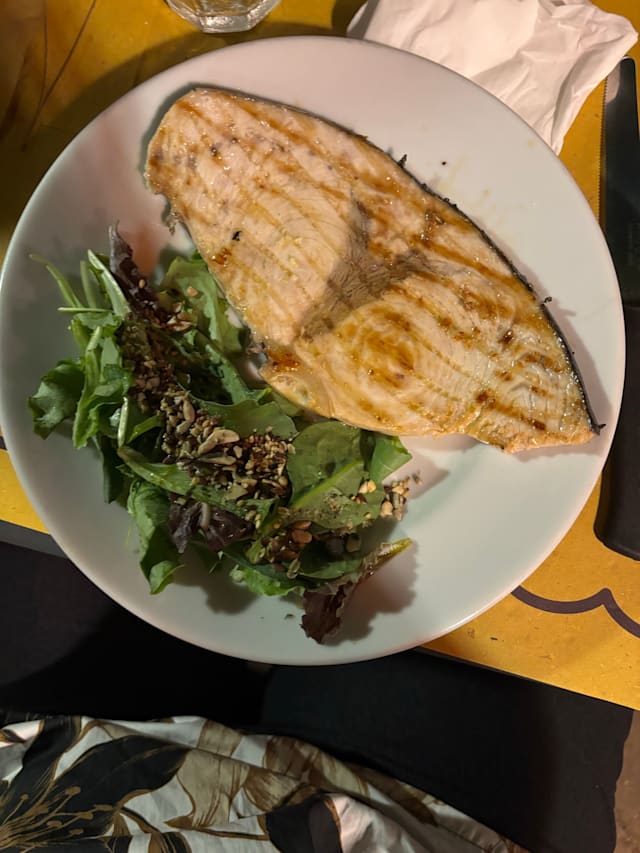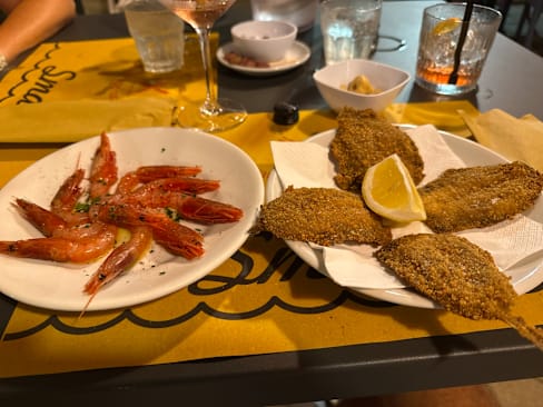 10/10Felt like we were at home! Great seafood in an outdoor casual environment tucked up a little ravine. Staff was friendly and attentive. Food recommendations were on target. The fish was left to speak for itself on the plate - not covered in sauces or loaded with spices and herbs. I had sarde frito and shrimp from Galopoli and my squid ink pasta was probably the best I’ve ever had. Wife had the cod that could have easily fed 2 plus a fava bean puree. Bottle of wine, a cocktail and one dessert for a hair over 100 euro. We’d for sure return!