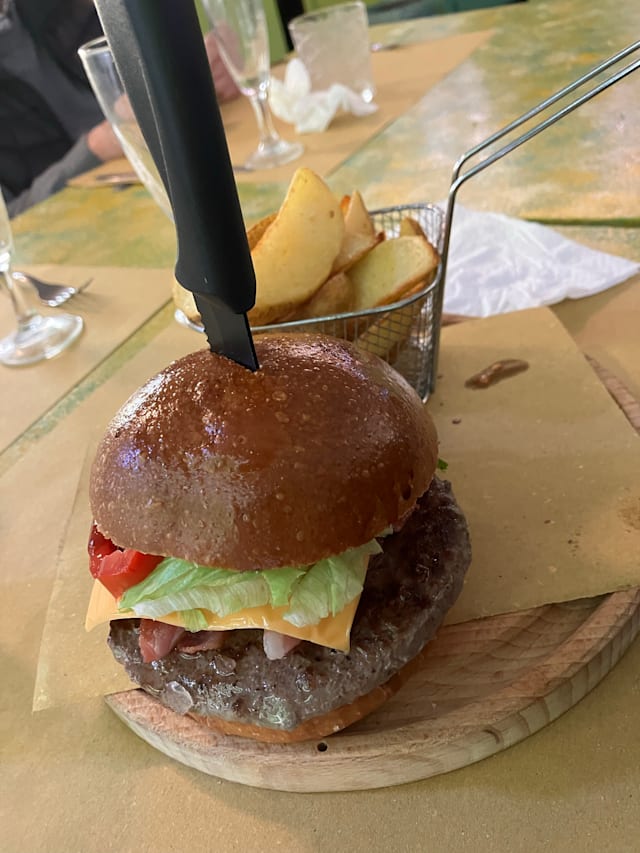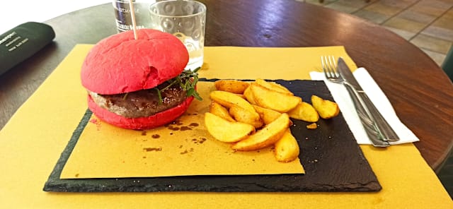 8.5/10Small casual café with fine food selection, swift service and really nice host. There are not alot of seating tables. We were seated outside which was perfectly ok as it was on a quiet street. Do remember mosquito repeller! The mosquitos were feasting on us! We were served a glass of prosecco and appetizers - unexpected but nice surprise! We had the ravioli, cabonara, salmon pasta and black angus burgers. Tiramisu and cappucino for dessert. Lovely meal at a great place and a perfect end to our vacation in Montecatini Terme.