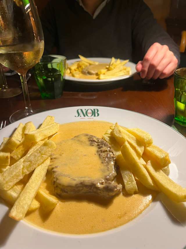 10/10Step into another era at Snob Bar. The menu is concise and to the point, offering a well-curated wine selection. Their croquette might just be the best in town—featuring a soft, rich filling encased in an ultra-thin, perfectly crisp layer of dough. The hand-cut French fries are as delightful to the eye as they are to the palate. The staff is kind and attentive to every detail, enhancing the experience. The cocktails are expertly crafted, making Snob Bar an excellent choice for after-work drinks or a casual bite with friends. Be sure to book in advance.