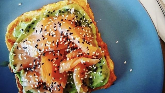 Avocado, salmone affumicato, pepe rosa, lime, menta, olio della Nocellara del Belice evo