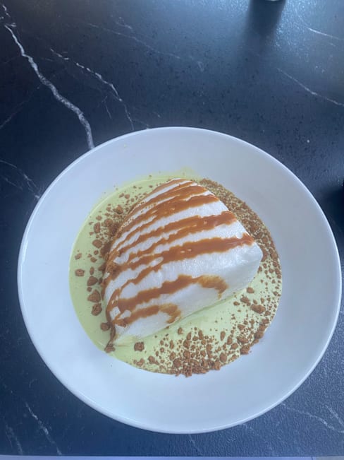 9.5/10The sea bass was incredible (flite de loup). Very fun, large dessert (ile flottante with pistachio cream) that was enough for two. Beautiful vibes outdoors on the terrace.