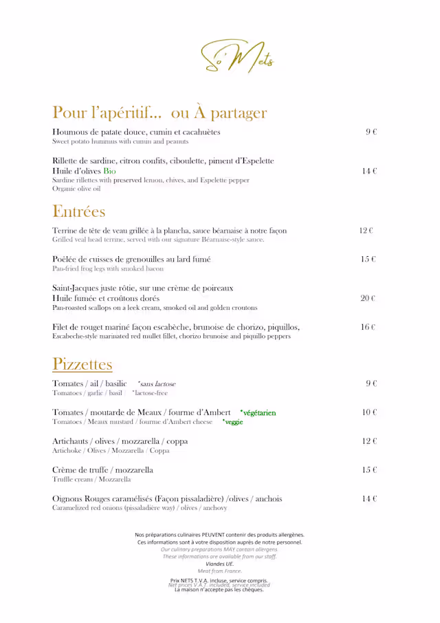 We had a brief, simple, lovely lunch at So’Mets. After being seated at a table outside, we were warmly greeted and offered menus. I enjoyed the special, a perfectly executed risotto with seafood and peas, accompanied by the nearly obligatory Provençal rosé. My wife tucked into a bowl featuring little octopi pieces in a black ink sauce. The service was familial and casual, befitting the occasion. We look forward to returning on our next trip to Beaulieu-sur-Mer!