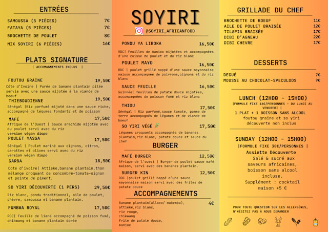 Cuisine d'Afrique de l'Ouest et du Conga (RDC) faite avec passion par Kante !