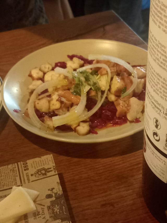 7.5/10It was very dark inside and hard to read the menu without using your phone’s torch - nice wine and good food but difficult to gauge portion sizes on first visit.