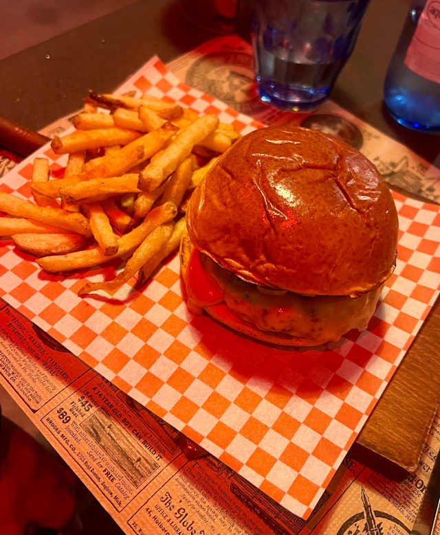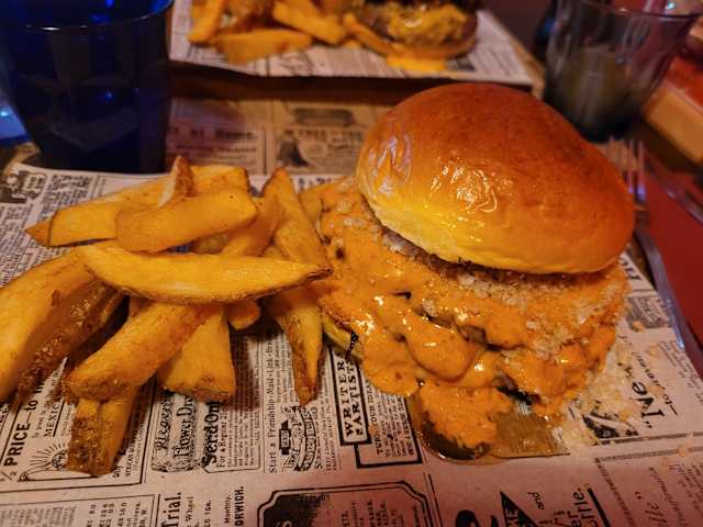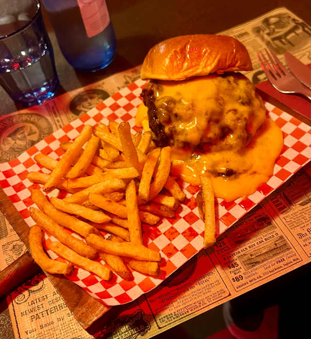 10/10+1The decor here is super! Really nice details and brilliant music. It has a bit of a band cellar vibe. They have great airconditioning and great menu. We had the Cooper and a smash burger with truffle mayo and they were both super. Service was fast and we were happy with the quality and flavour. We exchanged 2000 yums so price was very good.