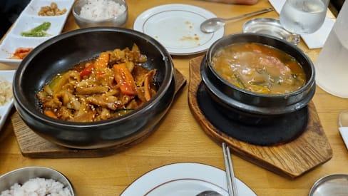 7/10Actually, I go to this restaurant because they have a delicious yukejang (soupe de boeuf piquante). The restaurant is otherwise a bit squeezed like a corridor, and the atmosphere not very warm.