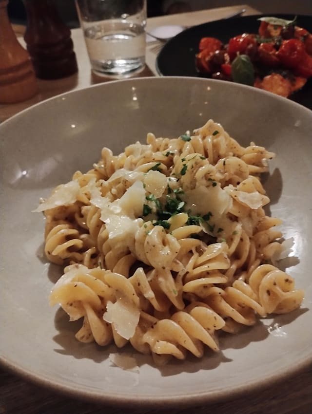 7.5/10The restaurant is located in a nice area and ambience to suit. The food portion size is in the smallish side. I had the fried artichoke appetizer sounded better than what it was. The sea bream with marinara was quite flavourful, but portion size was about 1/2 what I’d expect. The mash potatoes were some of the best I’ve had in Europe . We also had the beef medallions which were more tough than expected . Also had the pasta beef dish which whike flavourful, definitely is aided by the fact that the more hungry Yiu are the more you’ll like it. We passed on desert. Bottom line is the place is fine, just not noteworthy. If it weren’t for the fork discount, I wouldn’t be going!
