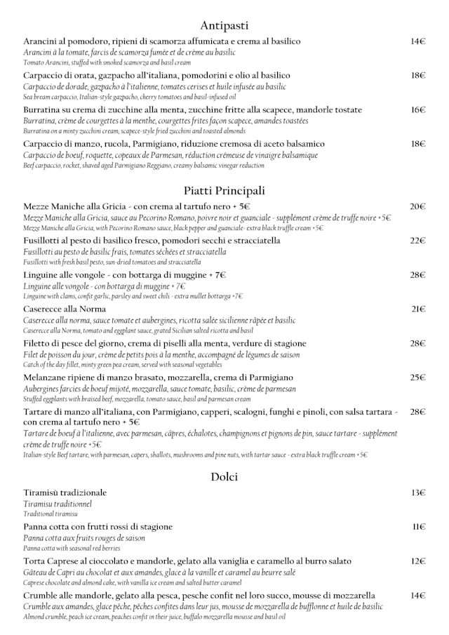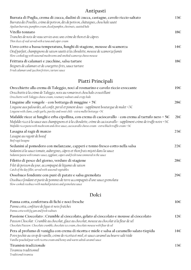 10/10Our waitress was so kind and helpful, and the food was delicious! We tried many dishes and loved them all. The beet salad and the prosciutto appetizers were big hits, and we all loved our entrees: lasagna was wonderful, clam linguine, and ravioli were too! We also had two delicious desserts— tiramisu and baba with limoncello. Thank you for a memorable evening in Paris!