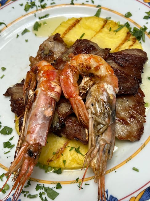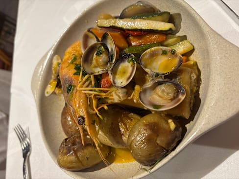 7.5/10The service was excellent but we just found the food mediocre. We shared a large salad, a pizza and the Secretos de porco com ananas e gambas. The pork was not nearly as good as at another Bib Gourmand restaurant in Lisbon and the pizza was very ordinary.