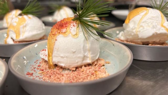 Gelato allo yogurt con aanamello al lanice e anumble di fregalotti