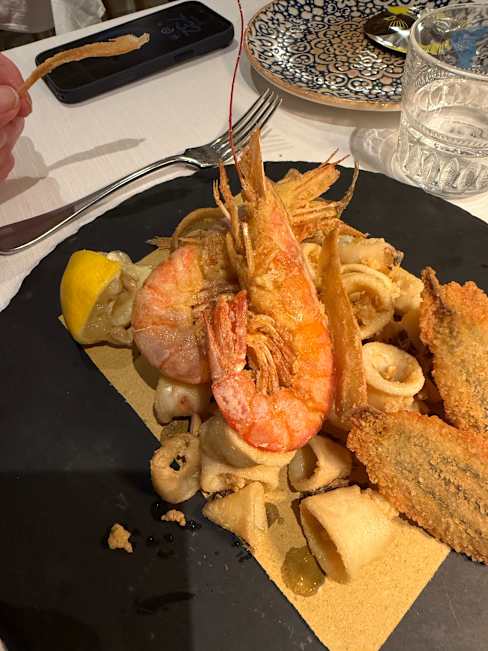 10/10Like many Americans we enjoyed an early dinner and we enjoyed extra attention and an informative explanation of the menu and local food. Especially enjoyed the warm pear with Gorgonzola and truffle and local purple prawns. The fresh fish and especially the calamari was amazing. The desserts were the best we have had in Italy. Rudy was a great host and takes great care with his cuisine.