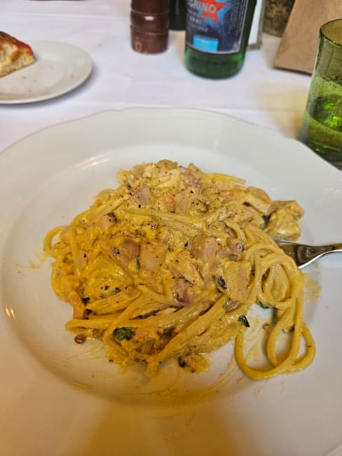 9/10We were there for lunch. The food was good and tasty. The service and atmosphere were very good and friendly. The price we had to pay was too high in my opinion: 1 starter, 2 first courses, 1desert, 2 espressos, and 1 bottle of sparkling water 125€ before tip.