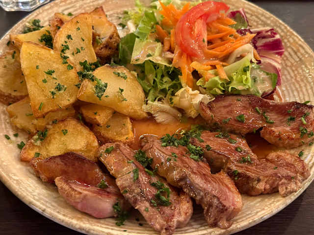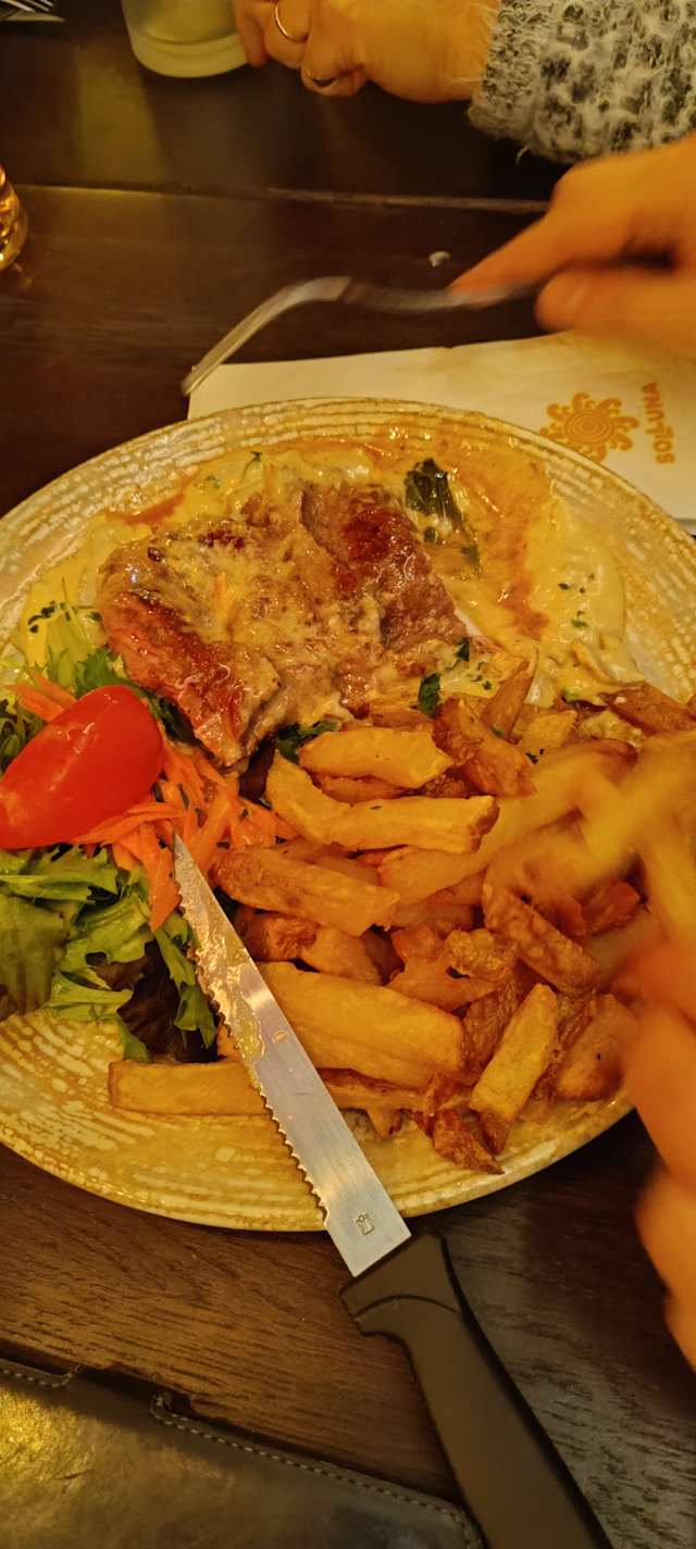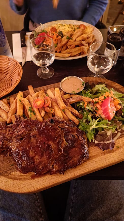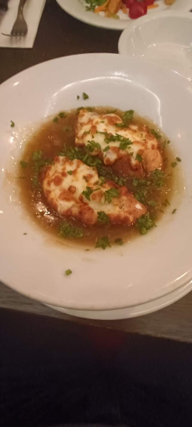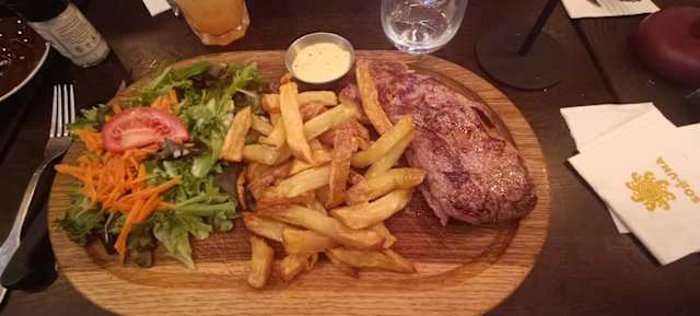 10/10Soupe a l'oignon and escargots really good, then we tried a nice omelette nature and astonishing entrecote (both with lots of french fries and salad). As a finisher we took one profiterole which was a bit of an interpretation (it had ice cream between two crunchy pieces of bignè paste). At a 50% discount we expected below average food but we were wrong: we strongly suggest you to try this!