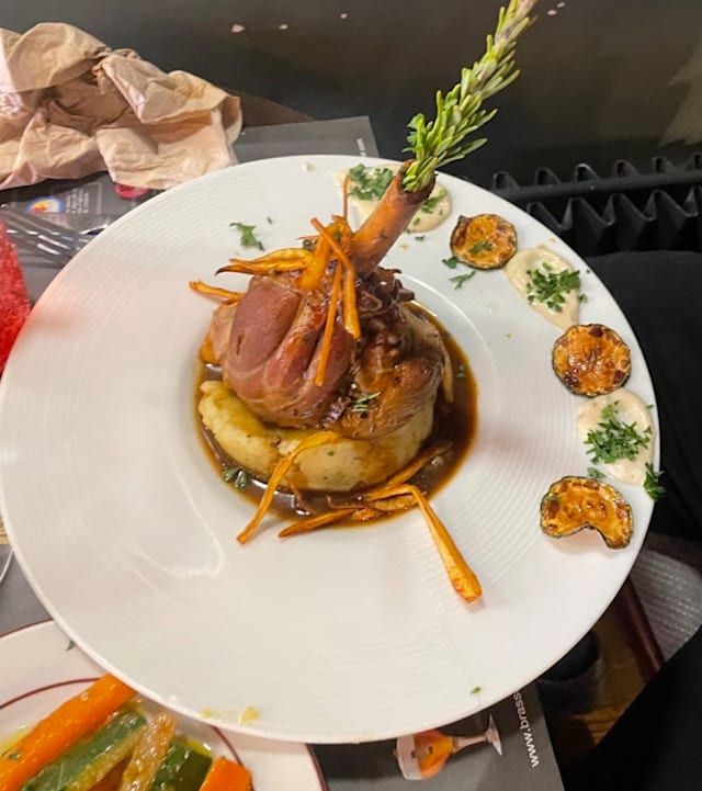 - Laqué au miel ou au poivre, pommes salardaise